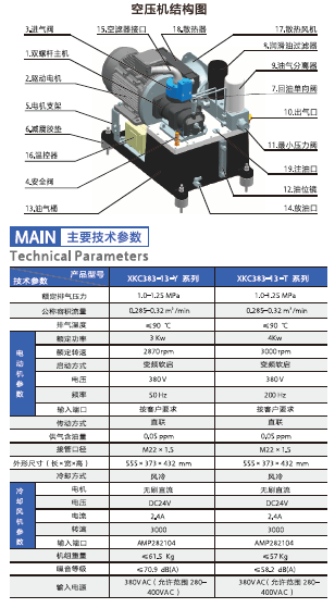 上气快、排气压力离、高效节能:本产品经过特定实验,在满载电流5.6A的博況下,充满气仅霈1.5分钟,琲气压力可达1.0-1.25Mpa,无需预热,比它类产品节能25%以上。